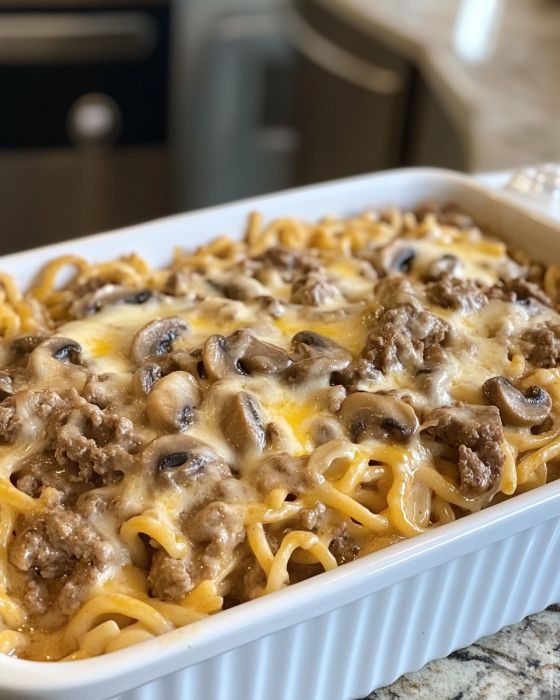 Un’elegante rivisitazione del classico pollo alla tetrazzini, la casseruola di manzo alla tetrazzini aggiunge delicati pezzi di manzo per un piatto più sostanzioso. Pasta, salsa cremosa e saporiti funghi si uniscono in questa casseruola, che affonda le sue radici nel tradizionale pasto italo-americano che prende il nome dalla famosa diva dell’opera Luisa Tetrazzini. È un punto di riferimento per pranzi condivisi e pasti in famiglia, poiché è di classe ed eccellente per le serate in cui vuoi rilassarti.